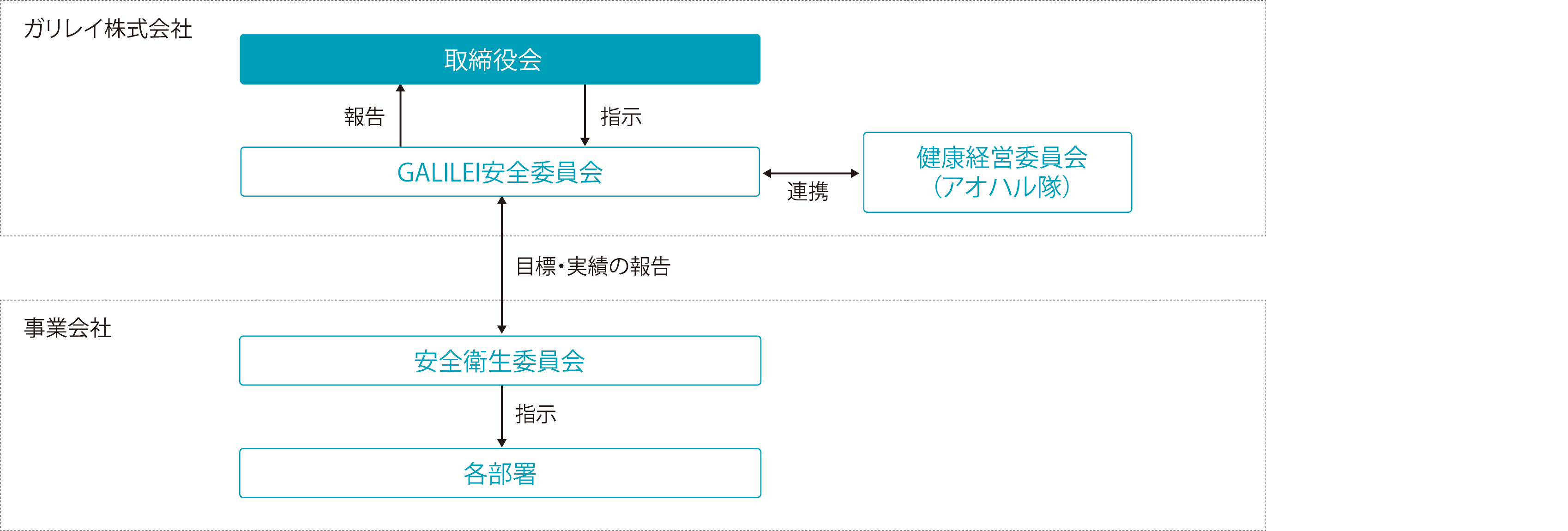 事故災害を未然に防止するため、2023年4月に安全衛生委員会の上位組織であるGALILEI安全委員会を新設しましたが、持株会社体制に移行したことに伴い、グループ横断の組織へと変更し、「労働災害ゼロ」、「交通事故ゼロ」、「健康障害ゼロ」をグループ全体で推進するため、事故分析や法令改正の対応などを発信しています。